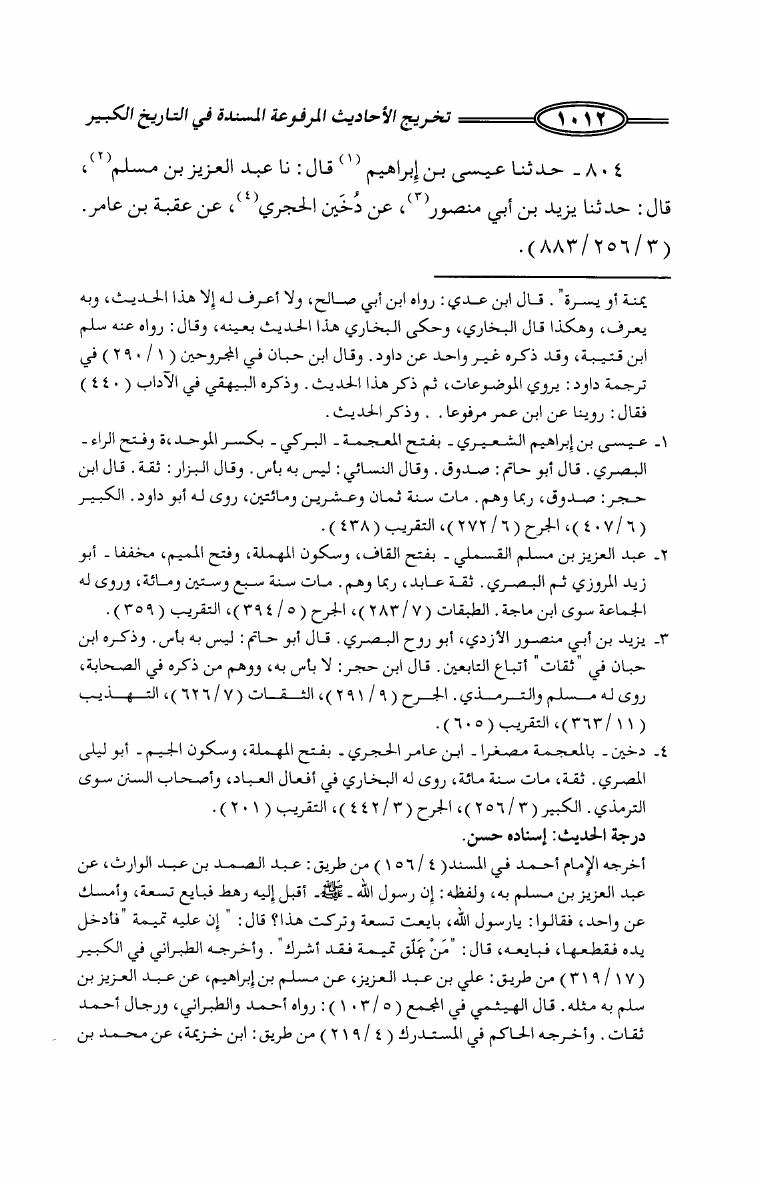 تخريج الأحاديث المرفوعة المسندة في كتاب التاريخ الكبير