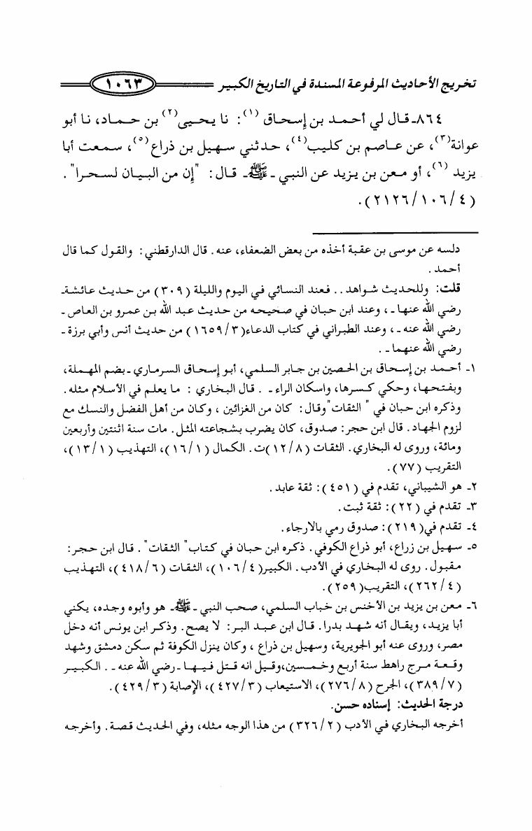 تخريج الأحاديث المرفوعة المسندة في كتاب التاريخ الكبير