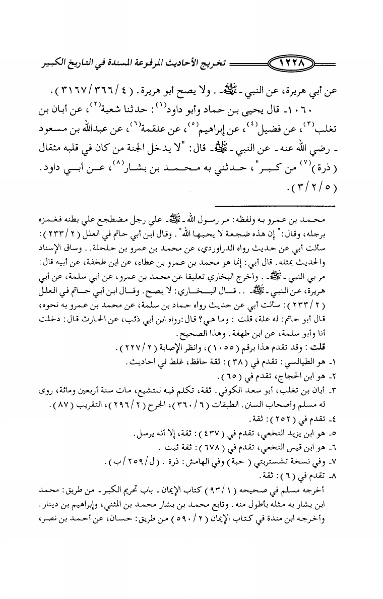 تخريج الأحاديث المرفوعة المسندة في كتاب التاريخ الكبير
