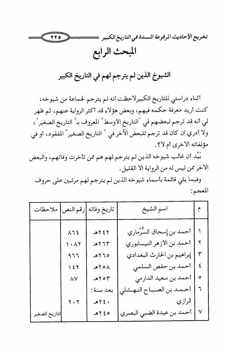 تخريج الأحاديث المرفوعة المسندة في كتاب التاريخ الكبير