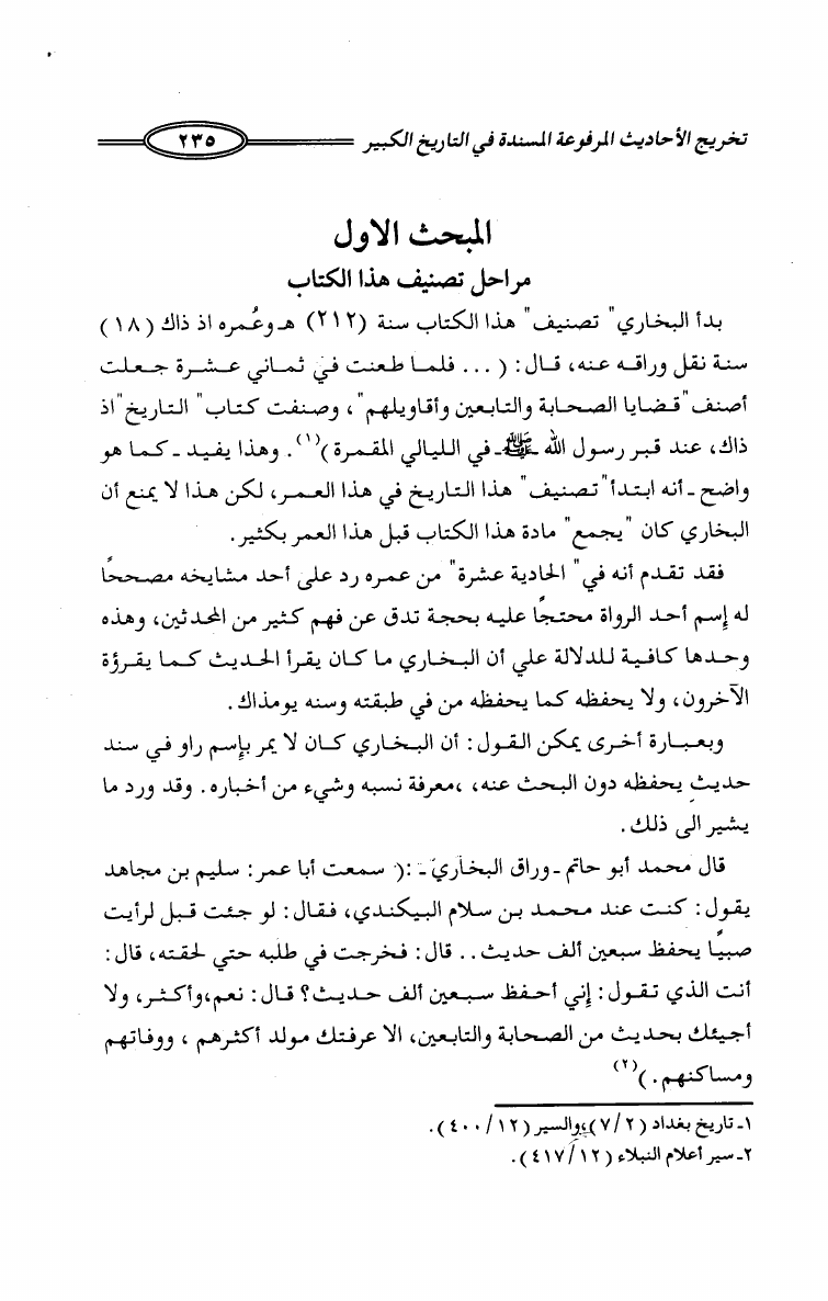 تخريج الأحاديث المرفوعة المسندة في كتاب التاريخ الكبير