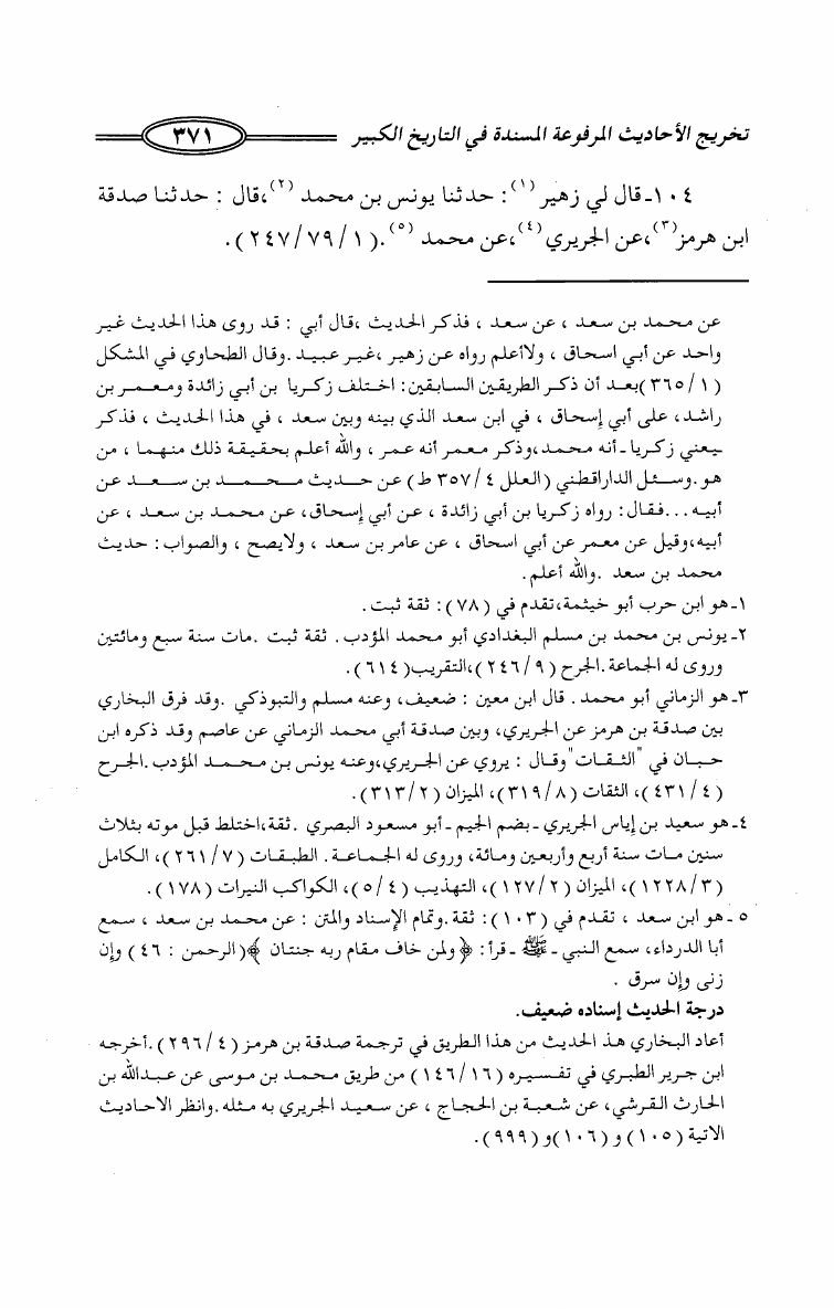 تخريج الأحاديث المرفوعة المسندة في كتاب التاريخ الكبير