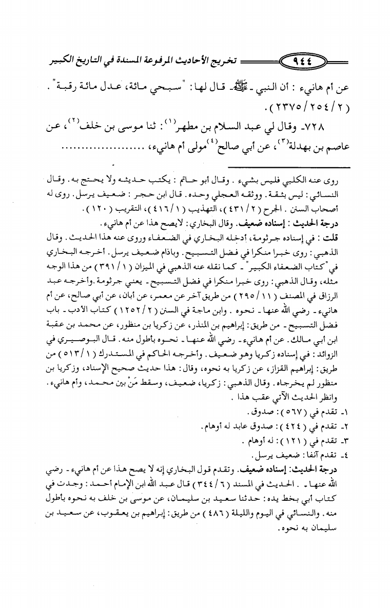 تخريج الأحاديث المرفوعة المسندة في كتاب التاريخ الكبير