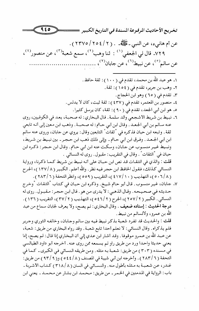 تخريج الأحاديث المرفوعة المسندة في كتاب التاريخ الكبير