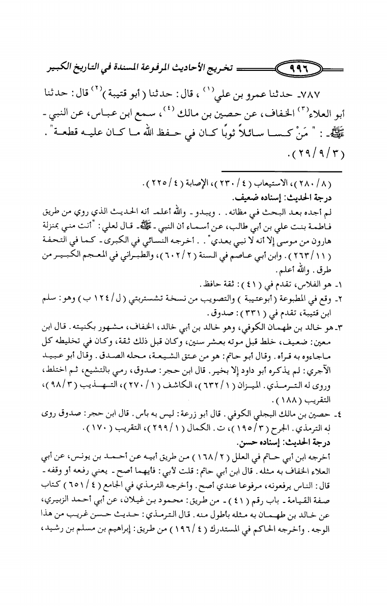 تخريج الأحاديث المرفوعة المسندة في كتاب التاريخ الكبير