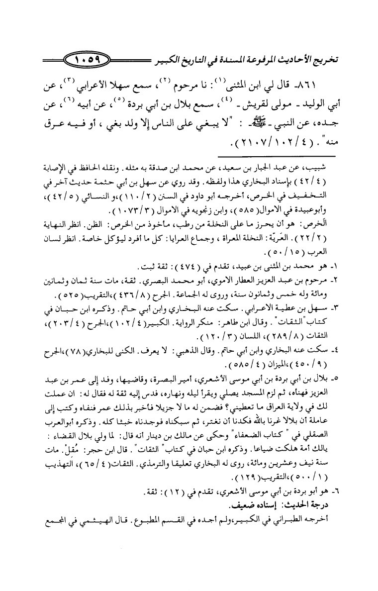 تخريج الأحاديث المرفوعة المسندة في كتاب التاريخ الكبير للإمام البخاري