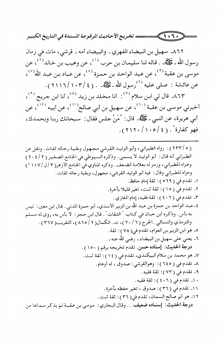 تخريج الأحاديث المرفوعة المسندة في كتاب التاريخ الكبير للإمام البخاري