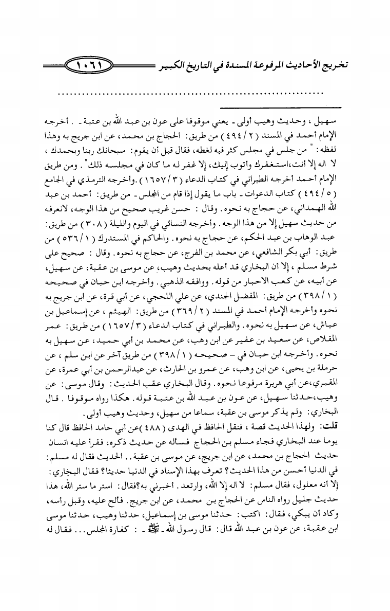 تخريج الأحاديث المرفوعة المسندة في كتاب التاريخ الكبير للإمام البخاري