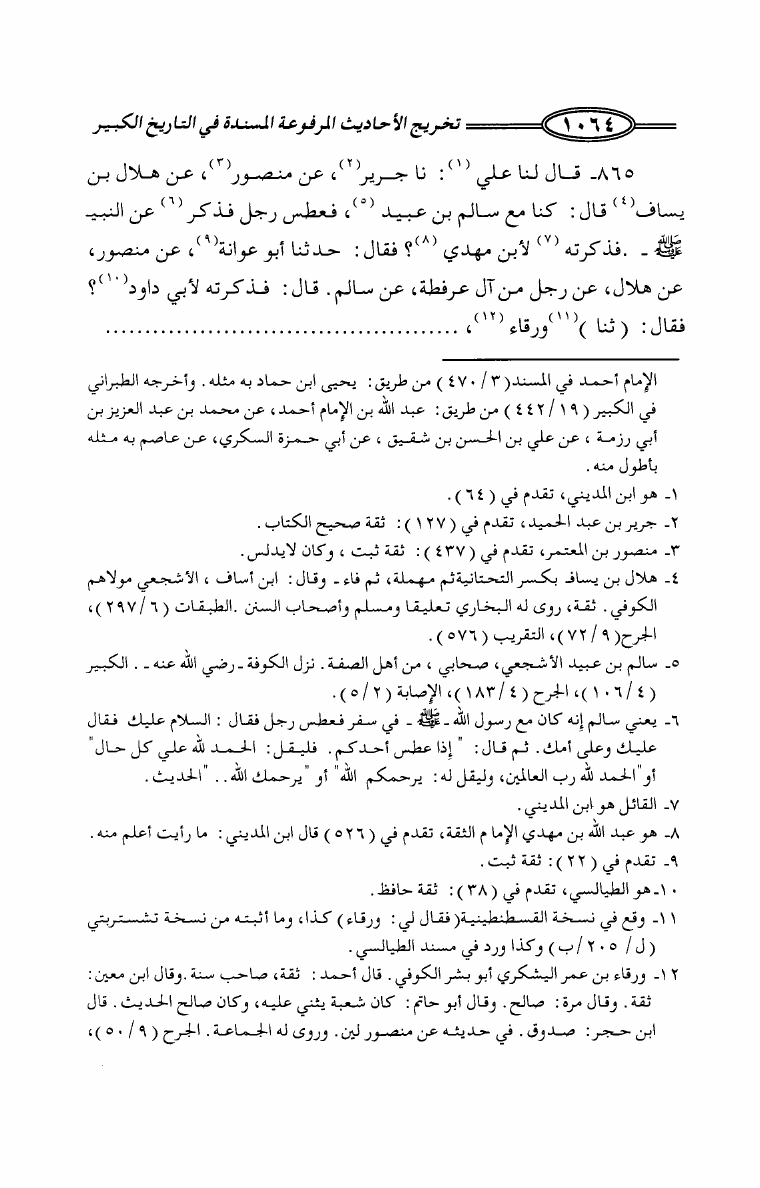 تخريج الأحاديث المرفوعة المسندة في كتاب التاريخ الكبير للإمام البخاري