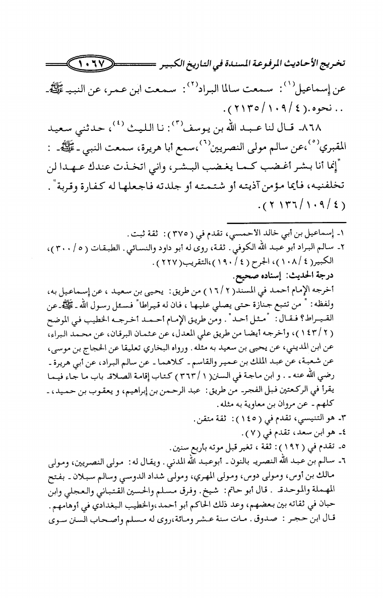 تخريج الأحاديث المرفوعة المسندة في كتاب التاريخ الكبير للإمام البخاري