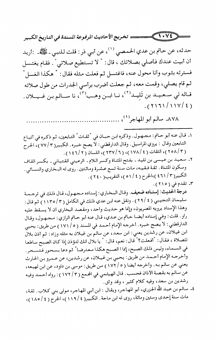 تخريج الأحاديث المرفوعة المسندة في كتاب التاريخ الكبير للإمام البخاري