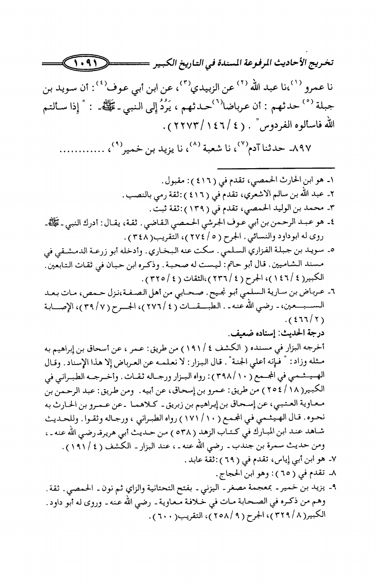 تخريج الأحاديث المرفوعة المسندة في كتاب التاريخ الكبير للإمام البخاري