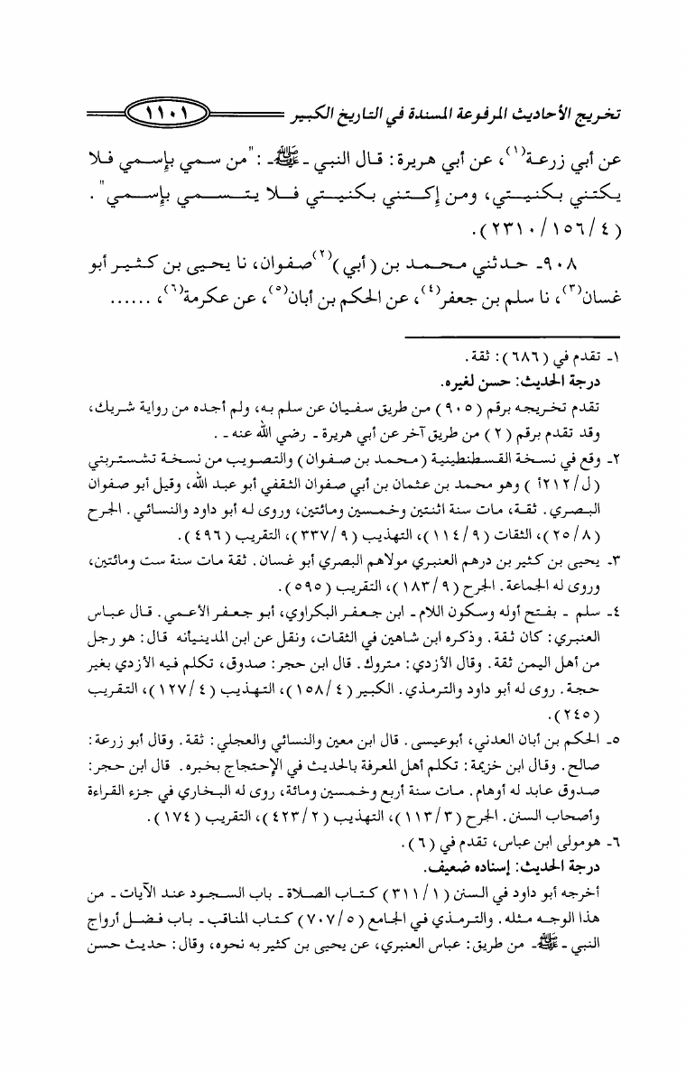 تخريج الأحاديث المرفوعة المسندة في كتاب التاريخ الكبير للإمام البخاري