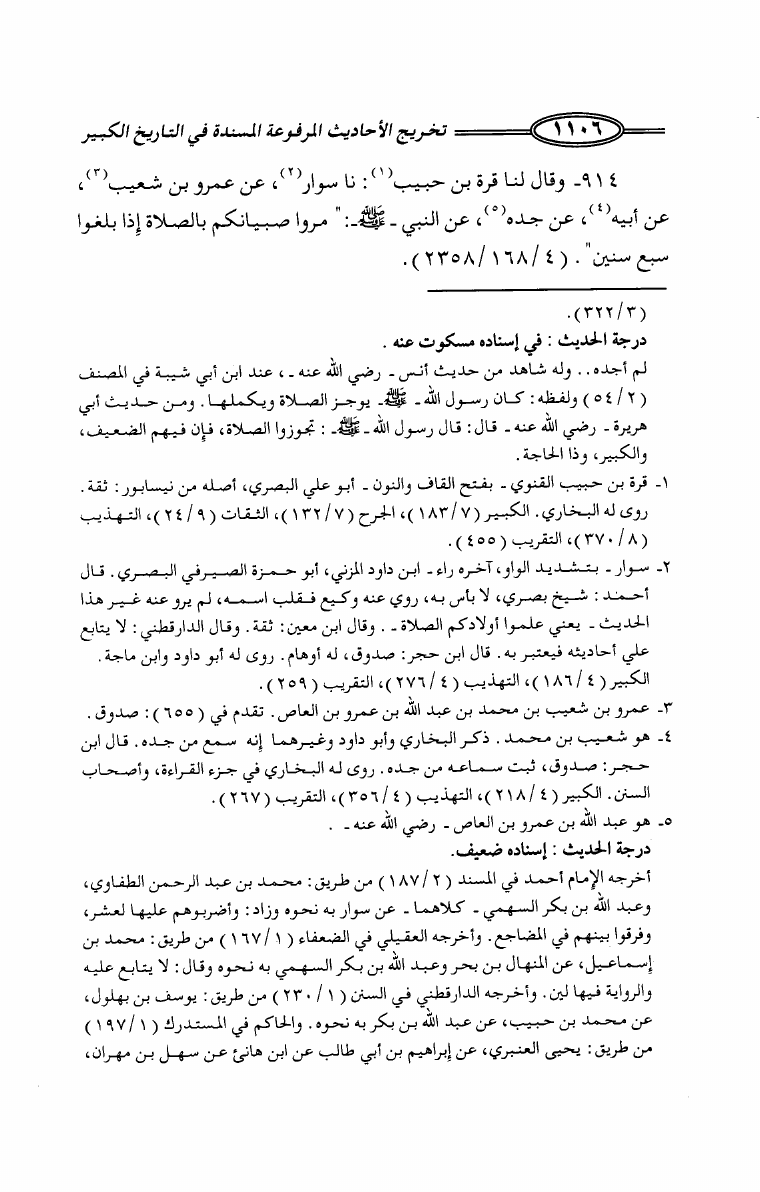 تخريج الأحاديث المرفوعة المسندة في كتاب التاريخ الكبير للإمام البخاري