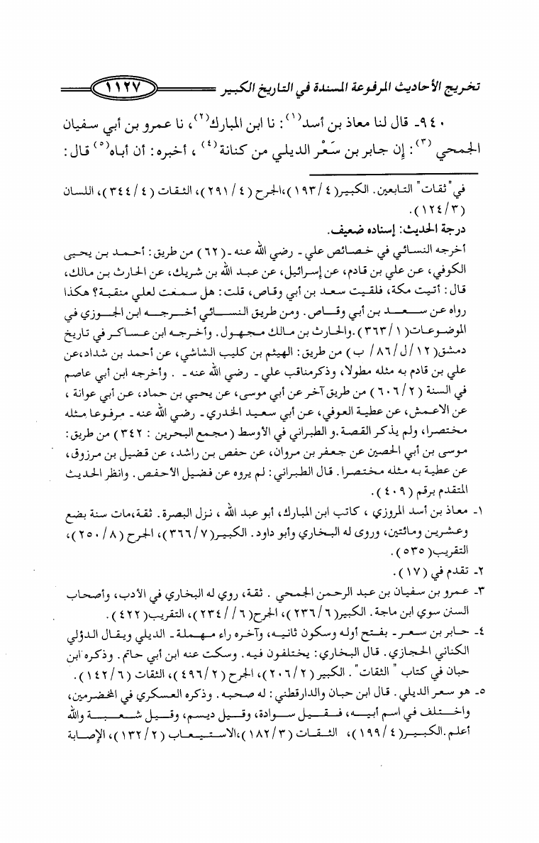 تخريج الأحاديث المرفوعة المسندة في كتاب التاريخ الكبير للإمام البخاري