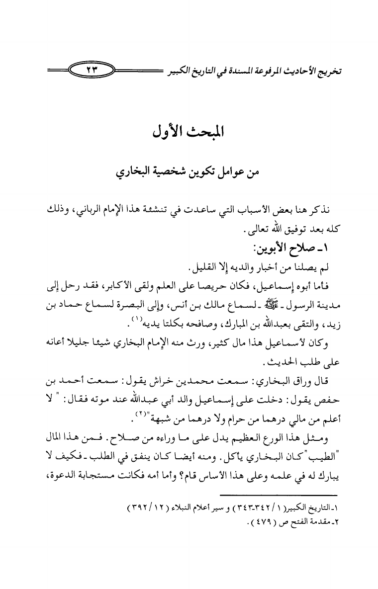تخريج الأحاديث المرفوعة المسندة في كتاب التاريخ الكبير للإمام البخاري