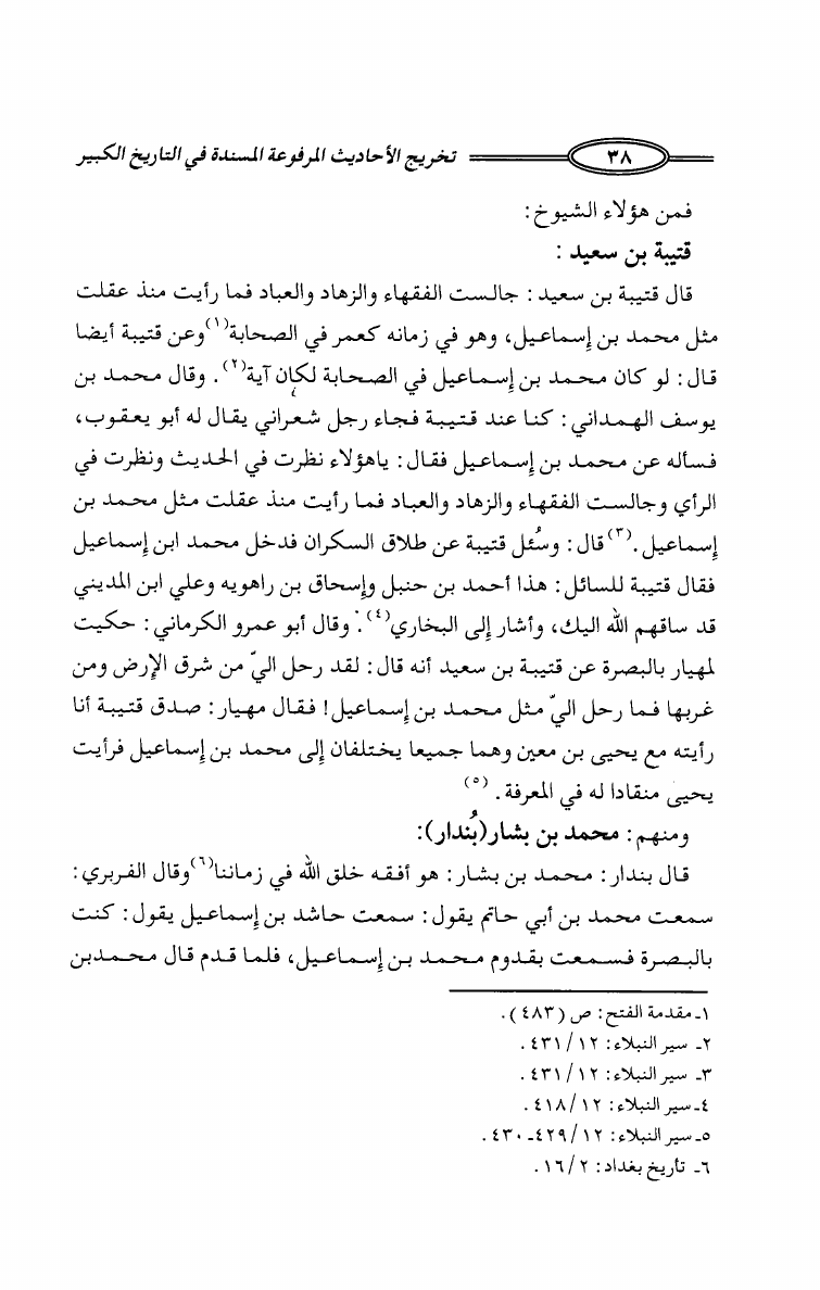 تخريج الأحاديث المرفوعة المسندة في كتاب التاريخ الكبير للإمام البخاري