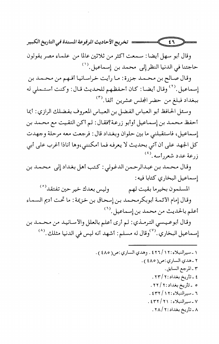 تخريج الأحاديث المرفوعة المسندة في كتاب التاريخ الكبير للإمام البخاري