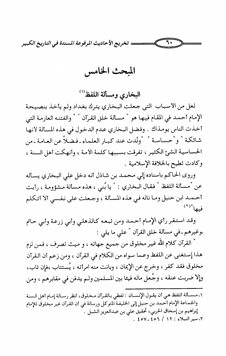 تخريج الأحاديث المرفوعة المسندة في كتاب التاريخ الكبير للإمام البخاري