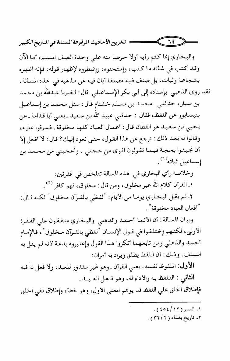 تخريج الأحاديث المرفوعة المسندة في كتاب التاريخ الكبير للإمام البخاري