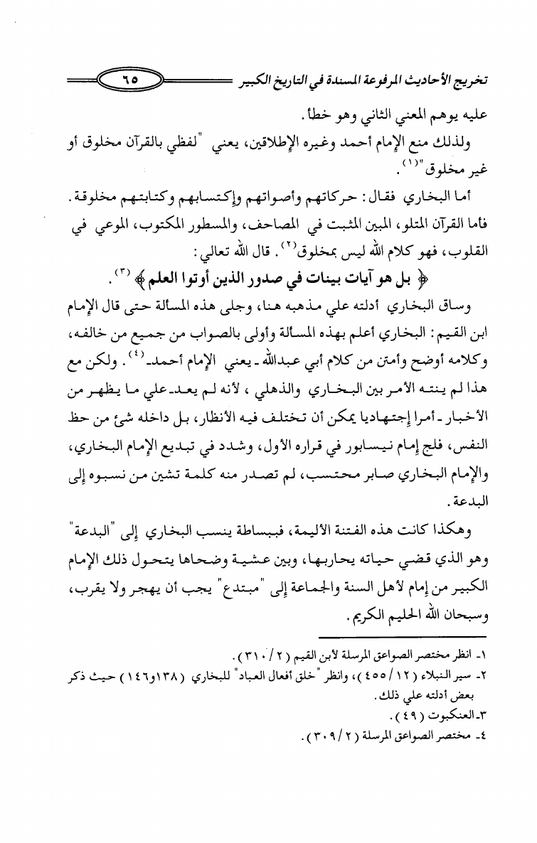 تخريج الأحاديث المرفوعة المسندة في كتاب التاريخ الكبير للإمام البخاري