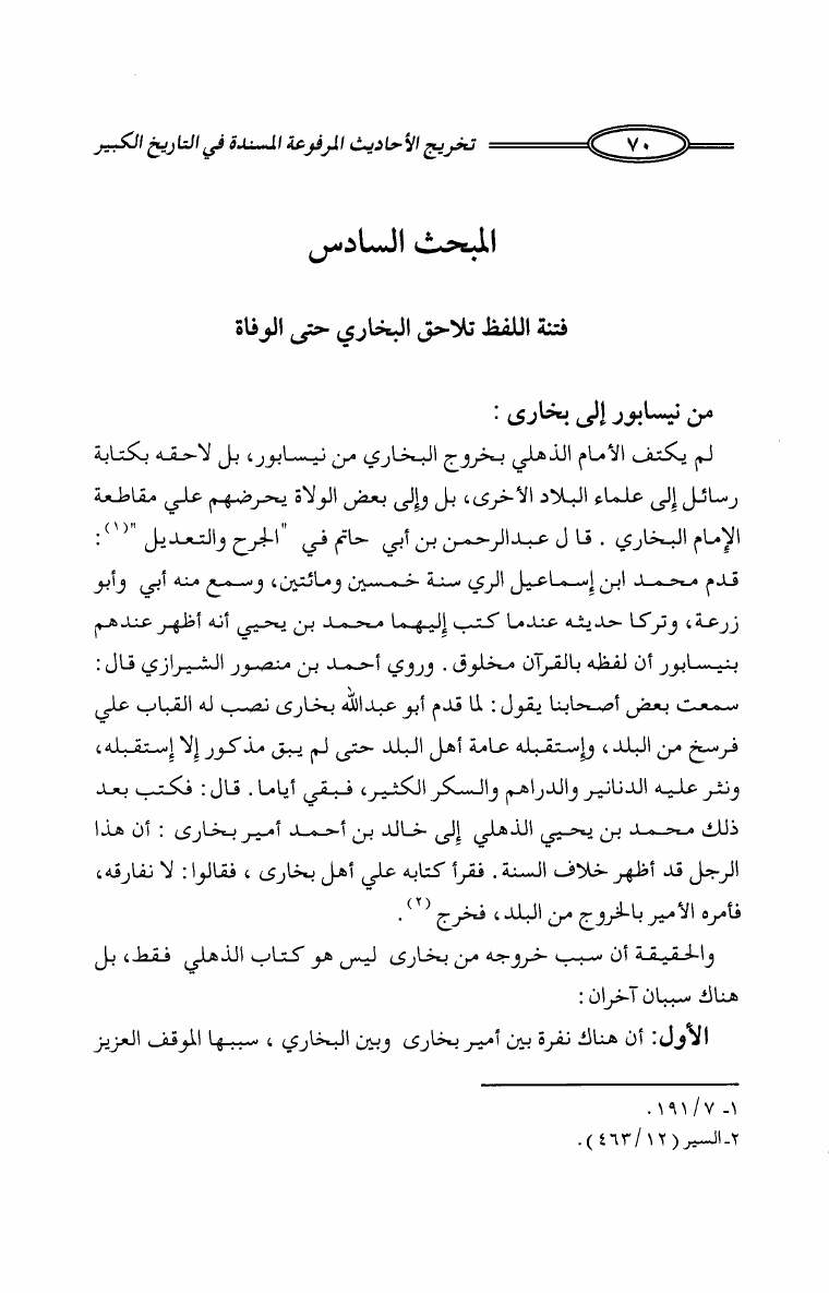 تخريج الأحاديث المرفوعة المسندة في كتاب التاريخ الكبير للإمام البخاري