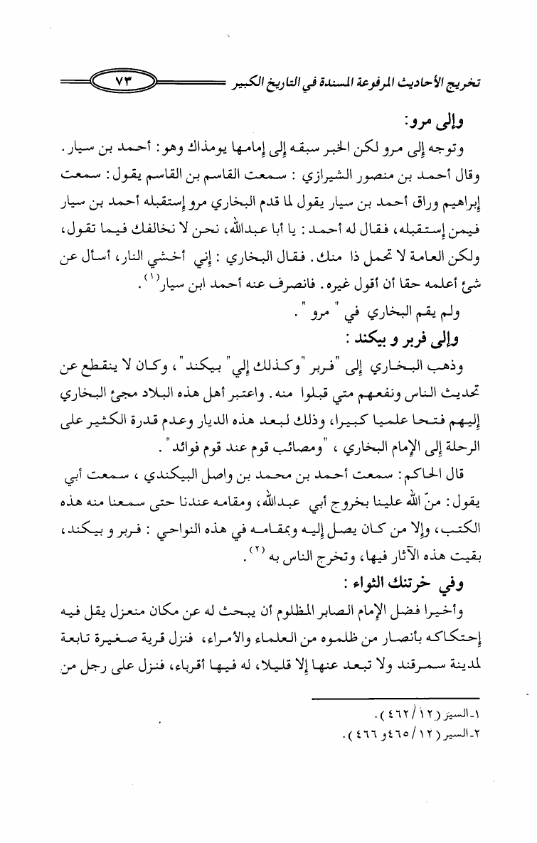 تخريج الأحاديث المرفوعة المسندة في كتاب التاريخ الكبير للإمام البخاري