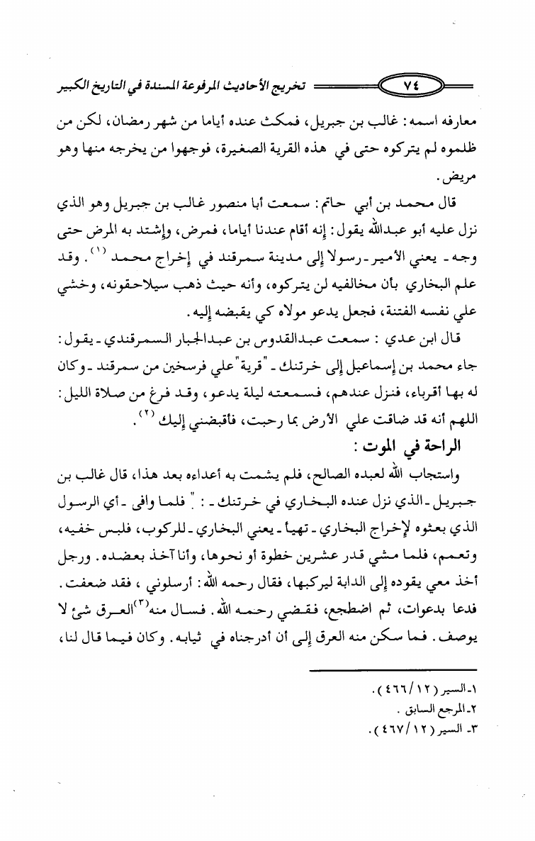 تخريج الأحاديث المرفوعة المسندة في كتاب التاريخ الكبير للإمام البخاري
