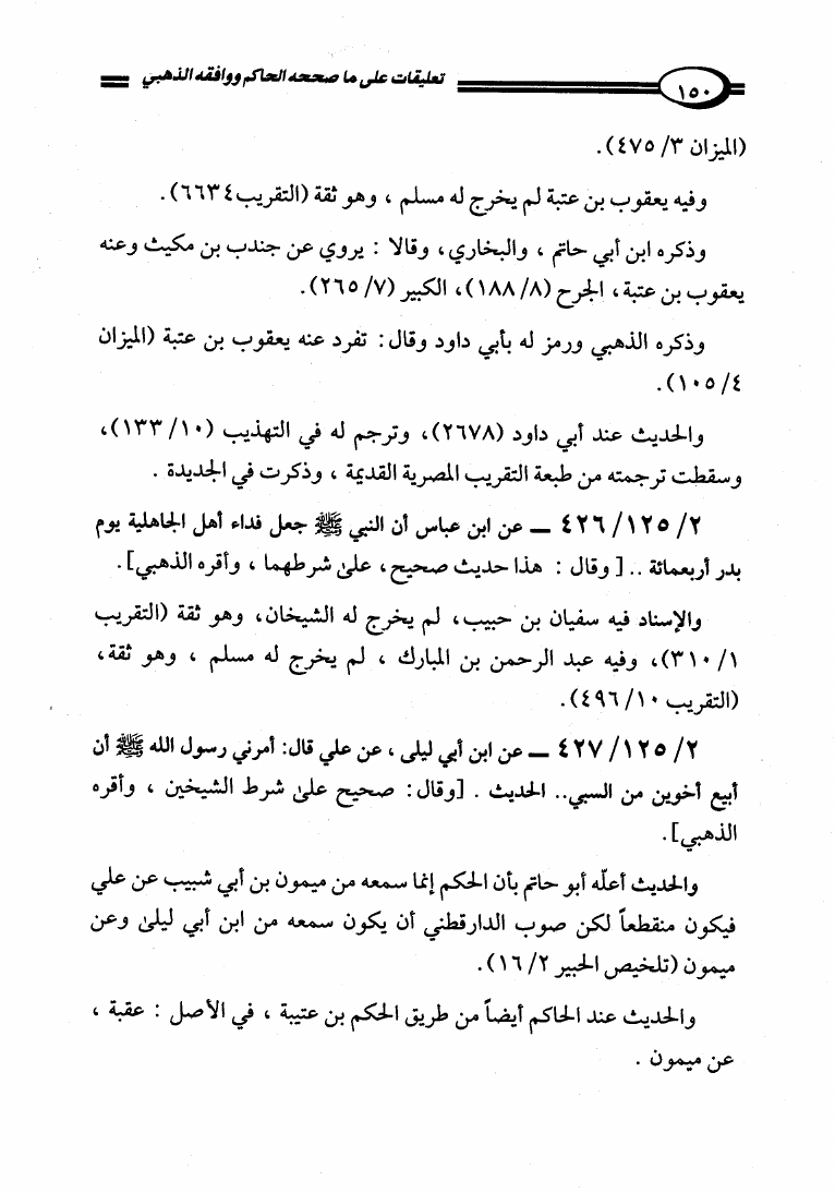 تعليقات على ما صححه الحاكم في المستدرك ووافقه الذهبي