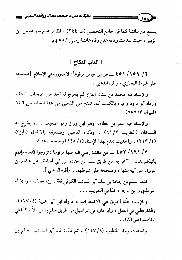 تعليقات على ما صححه الحاكم في المستدرك ووافقه الذهبي