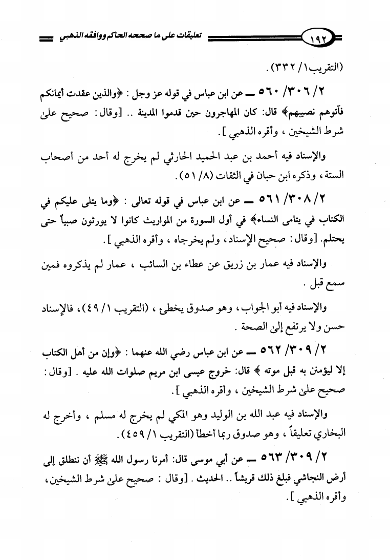 تعليقات على ما صححه الحاكم في المستدرك ووافقه الذهبي