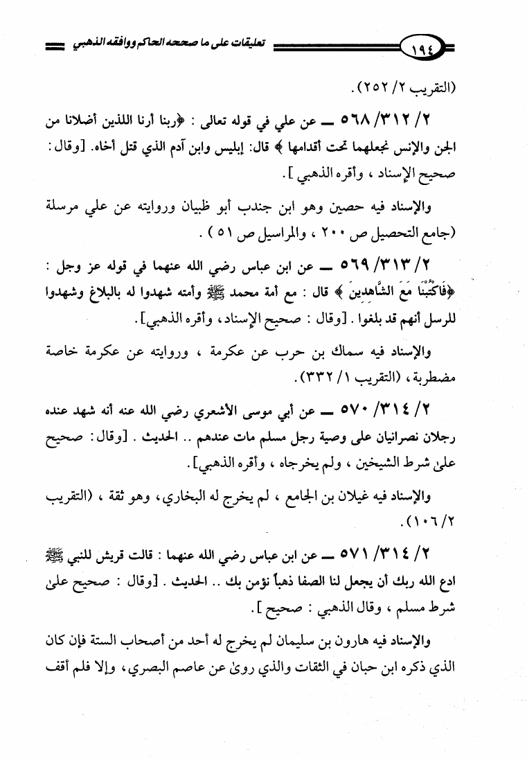 تعليقات على ما صححه الحاكم في المستدرك ووافقه الذهبي