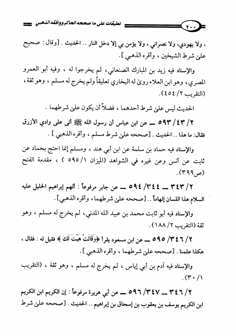 تعليقات على ما صححه الحاكم في المستدرك ووافقه الذهبي