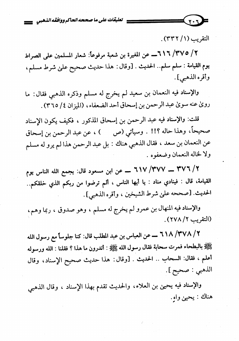 تعليقات على ما صححه الحاكم في المستدرك ووافقه الذهبي