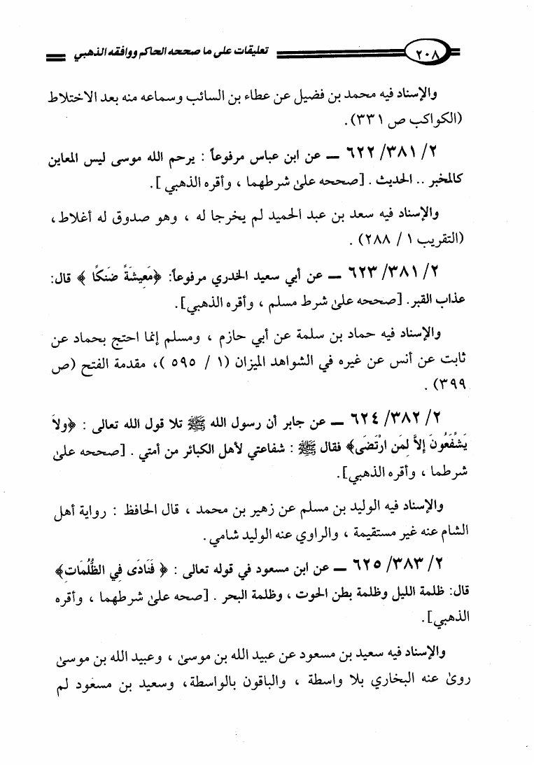 تعليقات على ما صححه الحاكم في المستدرك ووافقه الذهبي