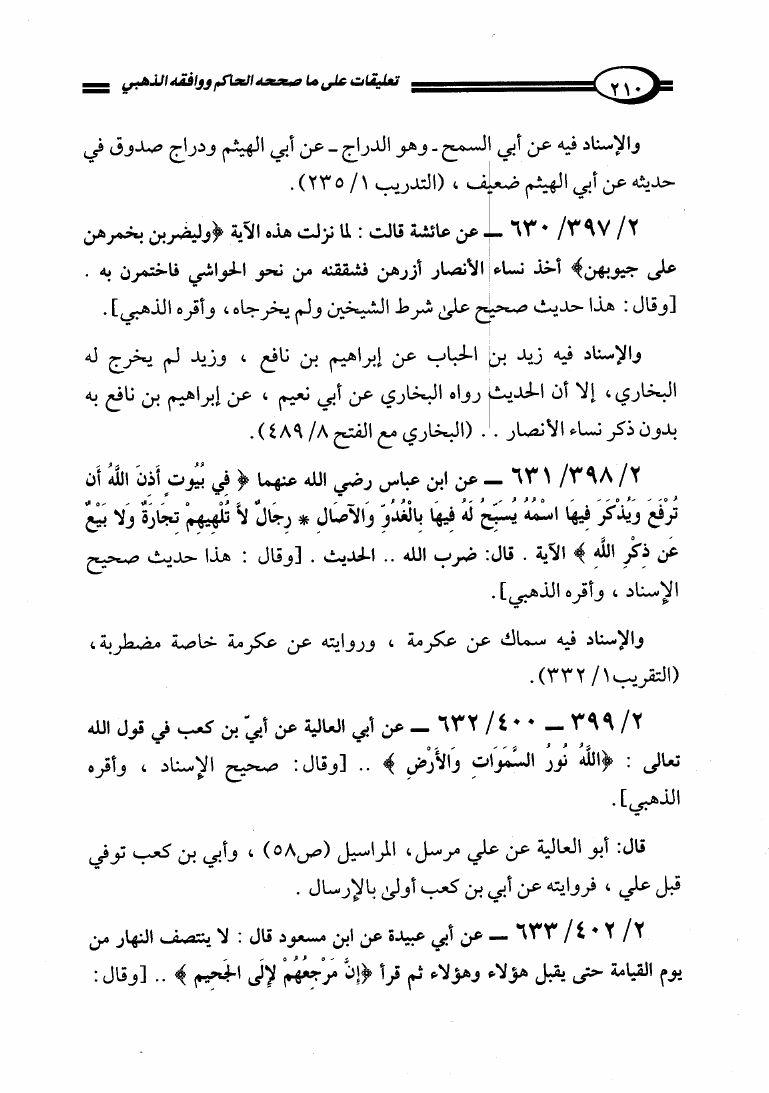 تعليقات على ما صححه الحاكم في المستدرك ووافقه الذهبي