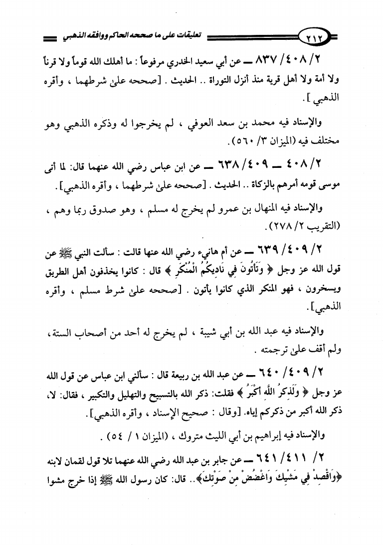 تعليقات على ما صححه الحاكم في المستدرك ووافقه الذهبي
