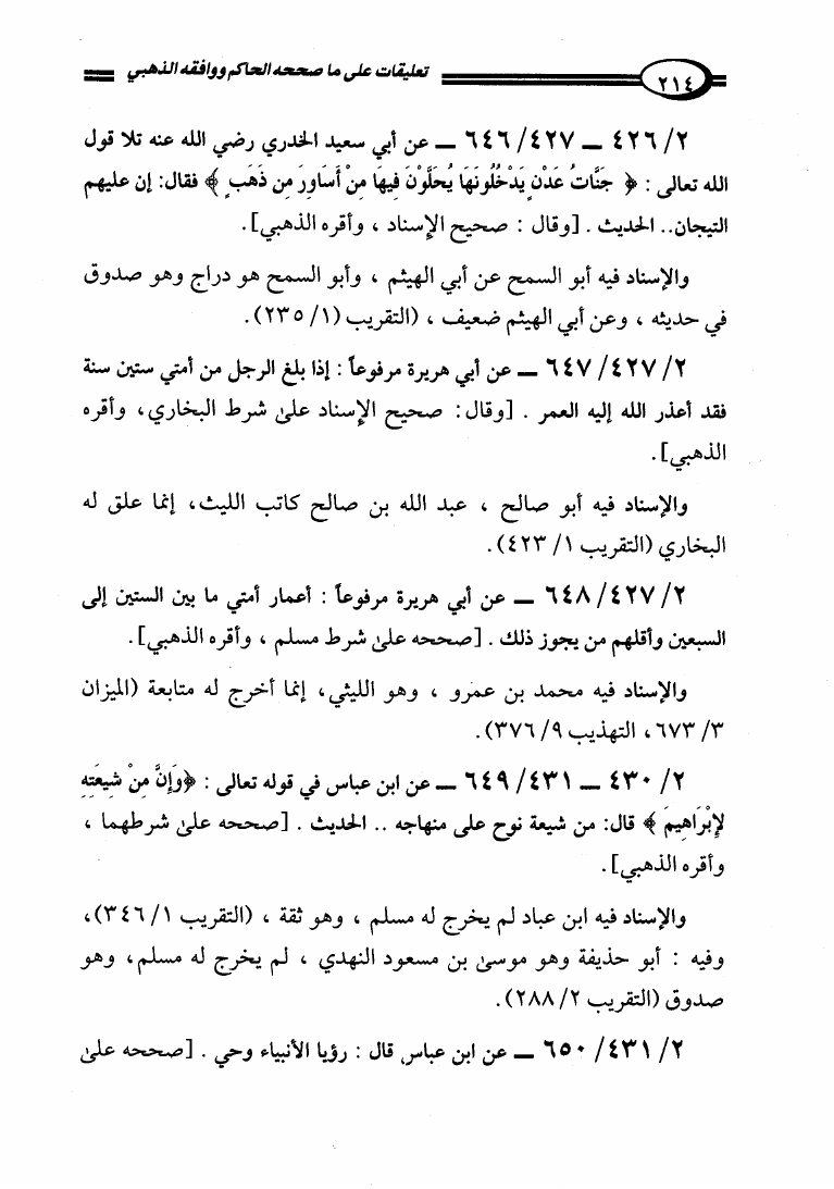 تعليقات على ما صححه الحاكم في المستدرك ووافقه الذهبي