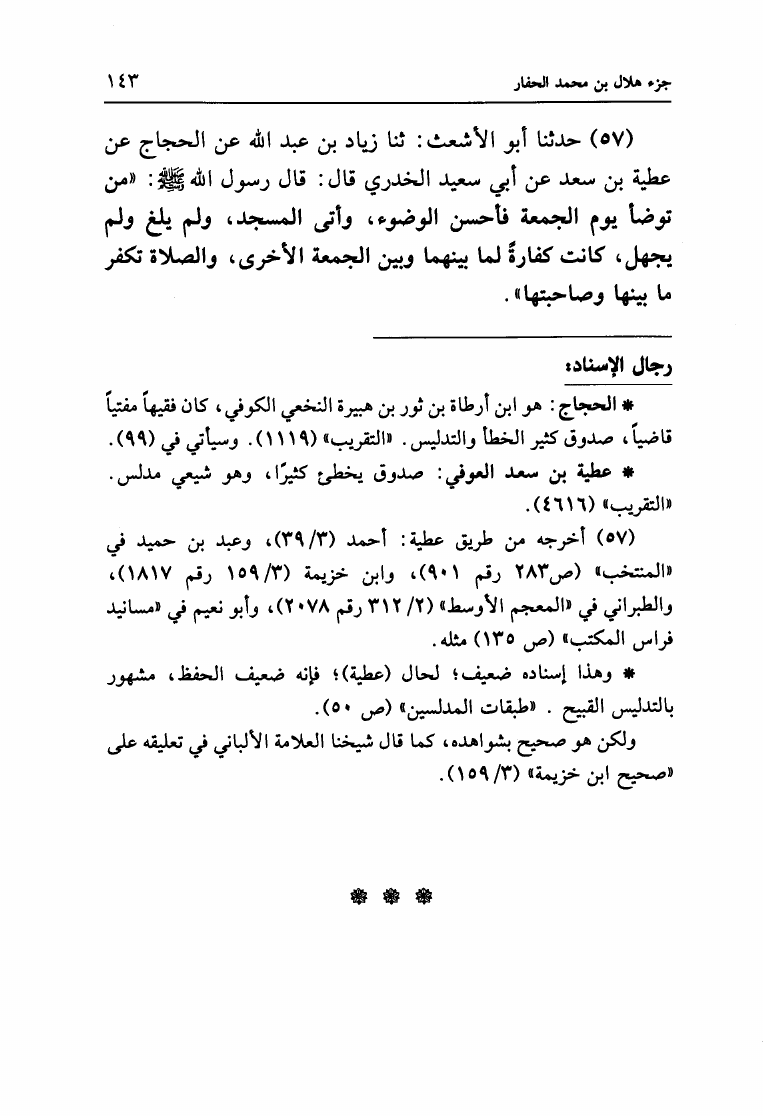 نام کتاب : جزء أحاديث أبي عبد الله الحسين بن يحي بن عياش المتوثي عن شيوخه رواية هلال بن محمد الحفار نویسنده : الحسين بن يحي بن عياش المتوثي أبو عبد الله جلد : 1 صفحه : 143