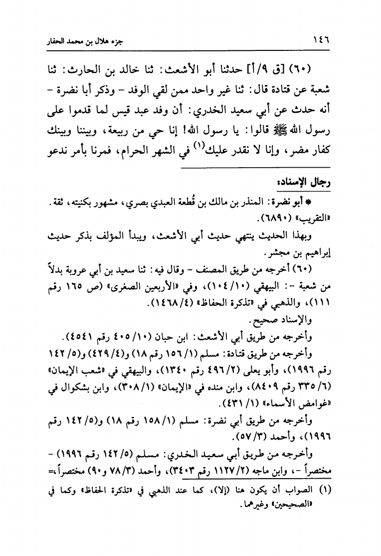 نام کتاب : جزء أحاديث أبي عبد الله الحسين بن يحي بن عياش المتوثي عن شيوخه رواية هلال بن محمد الحفار نویسنده : الحسين بن يحي بن عياش المتوثي أبو عبد الله جلد : 1 صفحه : 146