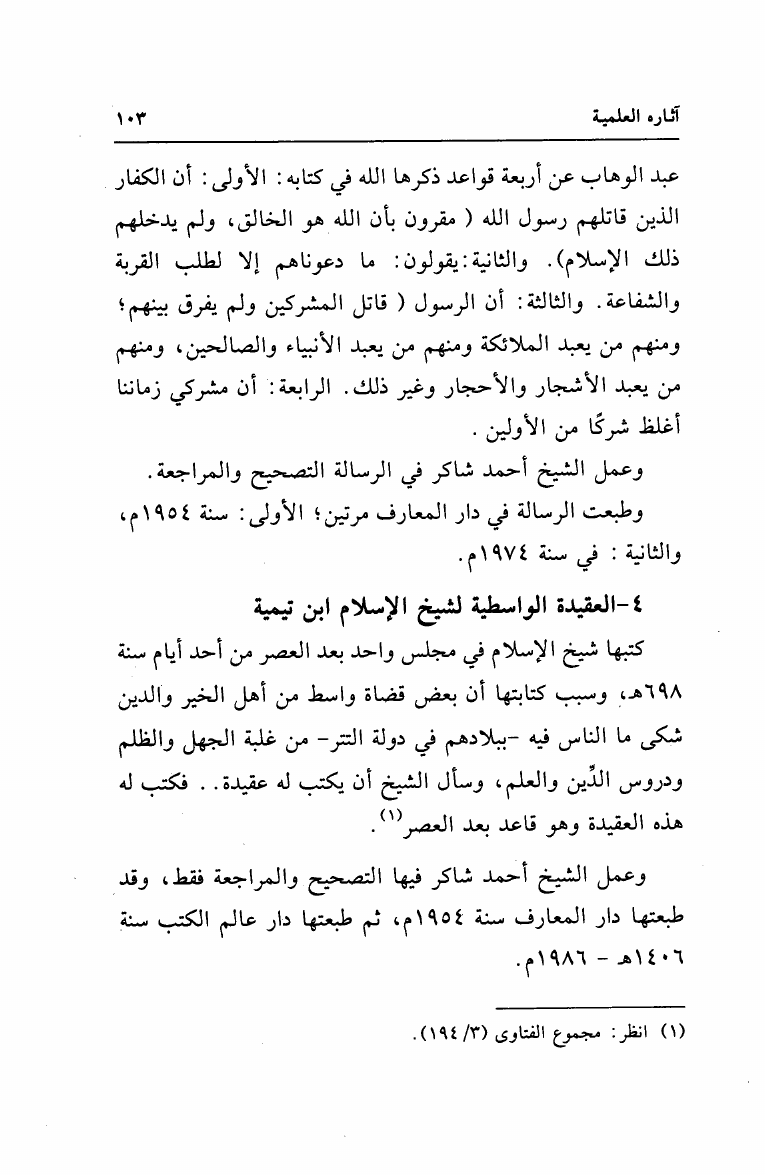 نام کتاب : جمهرة مقالات العلامة الشيخ أحمد محمد شاكر مع أهم تعقبات الشيخ على دائرة المعارف الإسلامية نویسنده : أحمد محمد شاكر أبو الأشبال جلد : 1 صفحه : 103