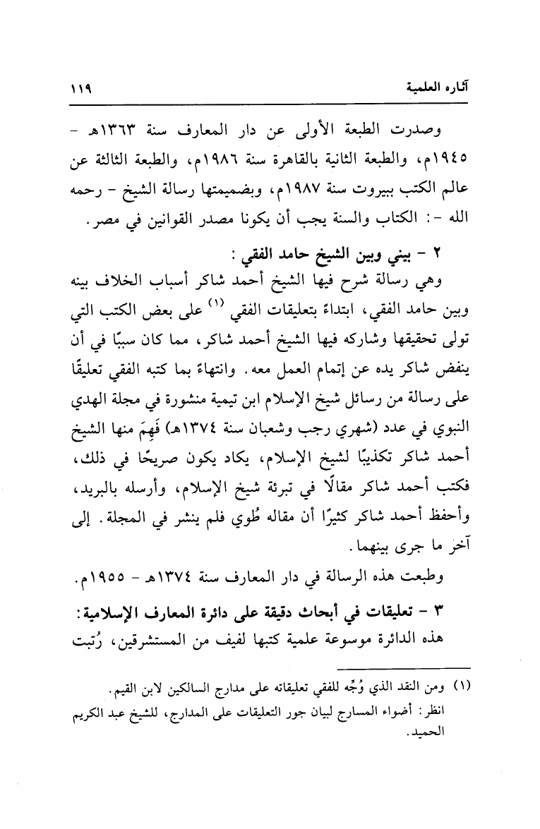 نام کتاب : جمهرة مقالات العلامة الشيخ أحمد محمد شاكر مع أهم تعقبات الشيخ على دائرة المعارف الإسلامية نویسنده : أحمد محمد شاكر أبو الأشبال جلد : 1 صفحه : 119