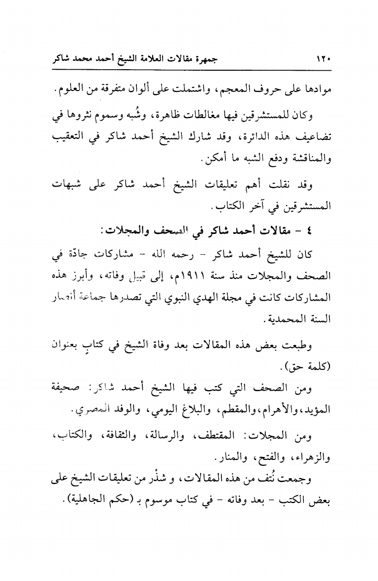 نام کتاب : جمهرة مقالات العلامة الشيخ أحمد محمد شاكر مع أهم تعقبات الشيخ على دائرة المعارف الإسلامية نویسنده : أحمد محمد شاكر أبو الأشبال جلد : 1 صفحه : 120