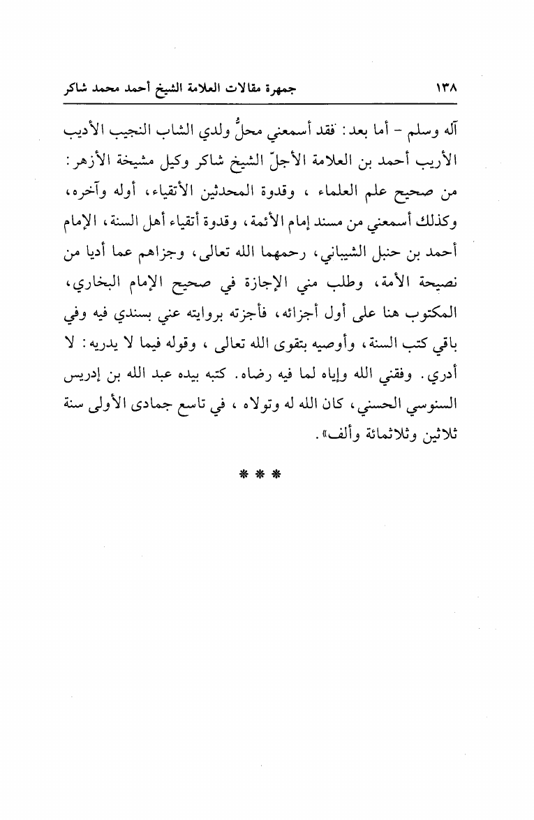 نام کتاب : جمهرة مقالات العلامة الشيخ أحمد محمد شاكر مع أهم تعقبات الشيخ على دائرة المعارف الإسلامية نویسنده : أحمد محمد شاكر أبو الأشبال جلد : 1 صفحه : 138