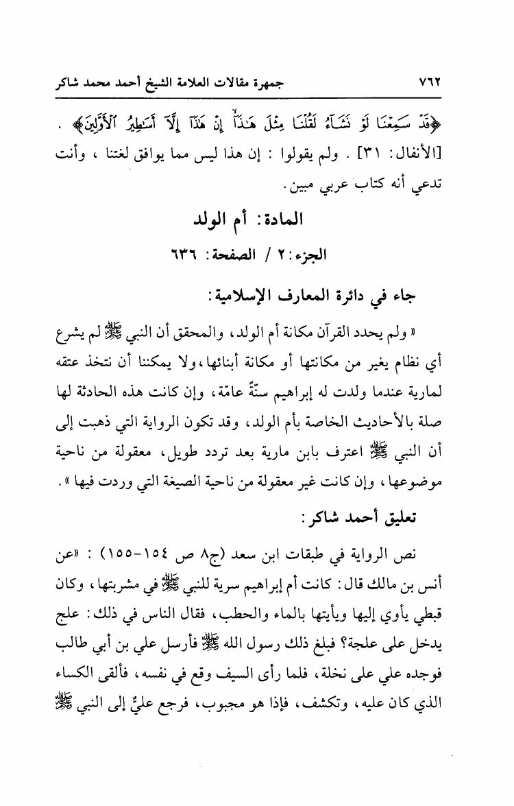 نام کتاب : جمهرة مقالات العلامة الشيخ أحمد محمد شاكر مع أهم تعقبات الشيخ على دائرة المعارف الإسلامية نویسنده : أحمد محمد شاكر أبو الأشبال جلد : 1 صفحه : 762