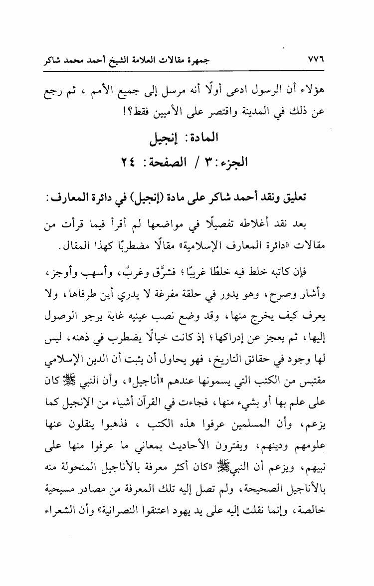 نام کتاب : جمهرة مقالات العلامة الشيخ أحمد محمد شاكر مع أهم تعقبات الشيخ على دائرة المعارف الإسلامية نویسنده : أحمد محمد شاكر أبو الأشبال جلد : 1 صفحه : 776