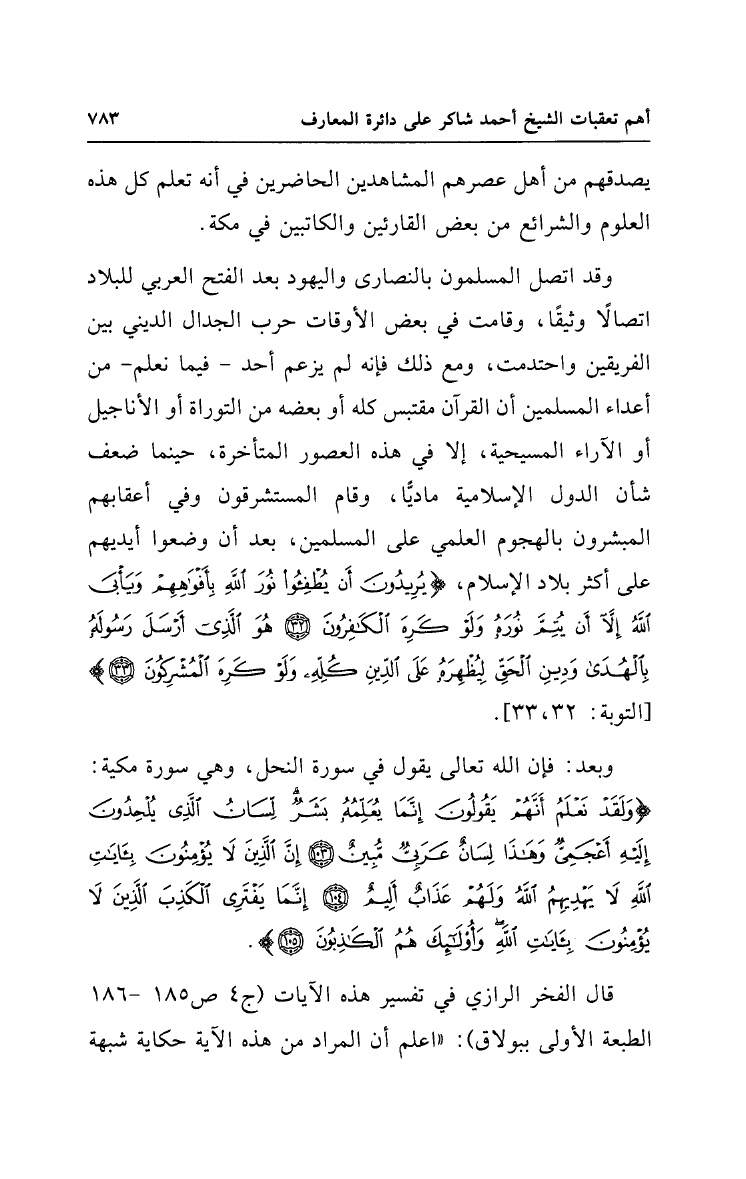 نام کتاب : جمهرة مقالات العلامة الشيخ أحمد محمد شاكر مع أهم تعقبات الشيخ على دائرة المعارف الإسلامية نویسنده : أحمد محمد شاكر أبو الأشبال جلد : 1 صفحه : 783