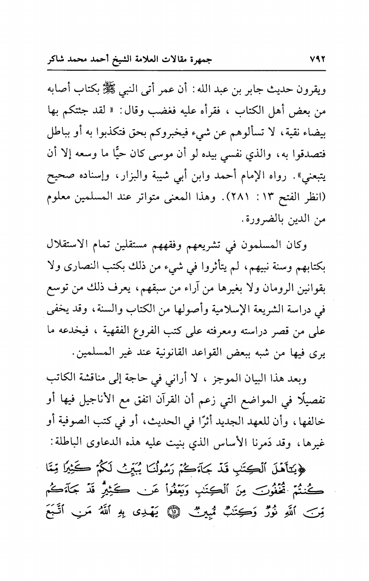 نام کتاب : جمهرة مقالات العلامة الشيخ أحمد محمد شاكر مع أهم تعقبات الشيخ على دائرة المعارف الإسلامية نویسنده : أحمد محمد شاكر أبو الأشبال جلد : 1 صفحه : 792