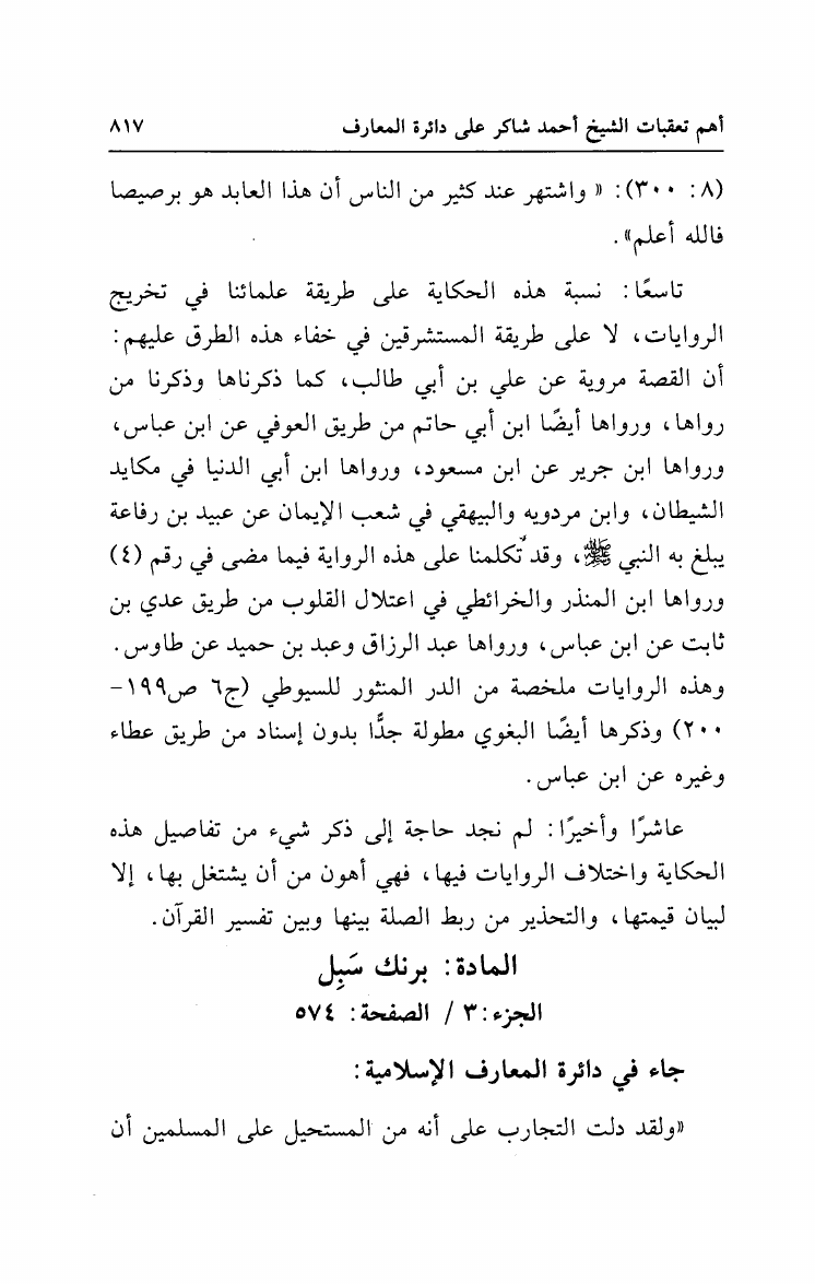 نام کتاب : جمهرة مقالات العلامة الشيخ أحمد محمد شاكر مع أهم تعقبات الشيخ على دائرة المعارف الإسلامية نویسنده : أحمد محمد شاكر أبو الأشبال جلد : 1 صفحه : 817