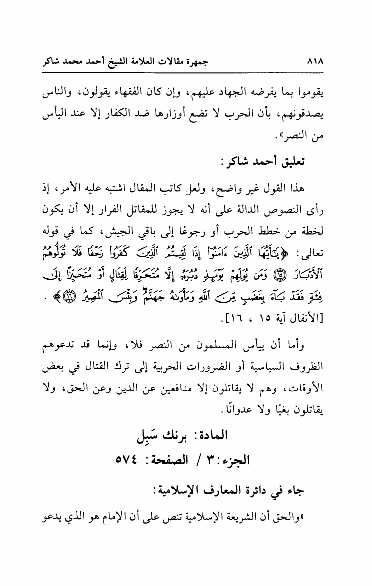 نام کتاب : جمهرة مقالات العلامة الشيخ أحمد محمد شاكر مع أهم تعقبات الشيخ على دائرة المعارف الإسلامية نویسنده : أحمد محمد شاكر أبو الأشبال جلد : 1 صفحه : 818
